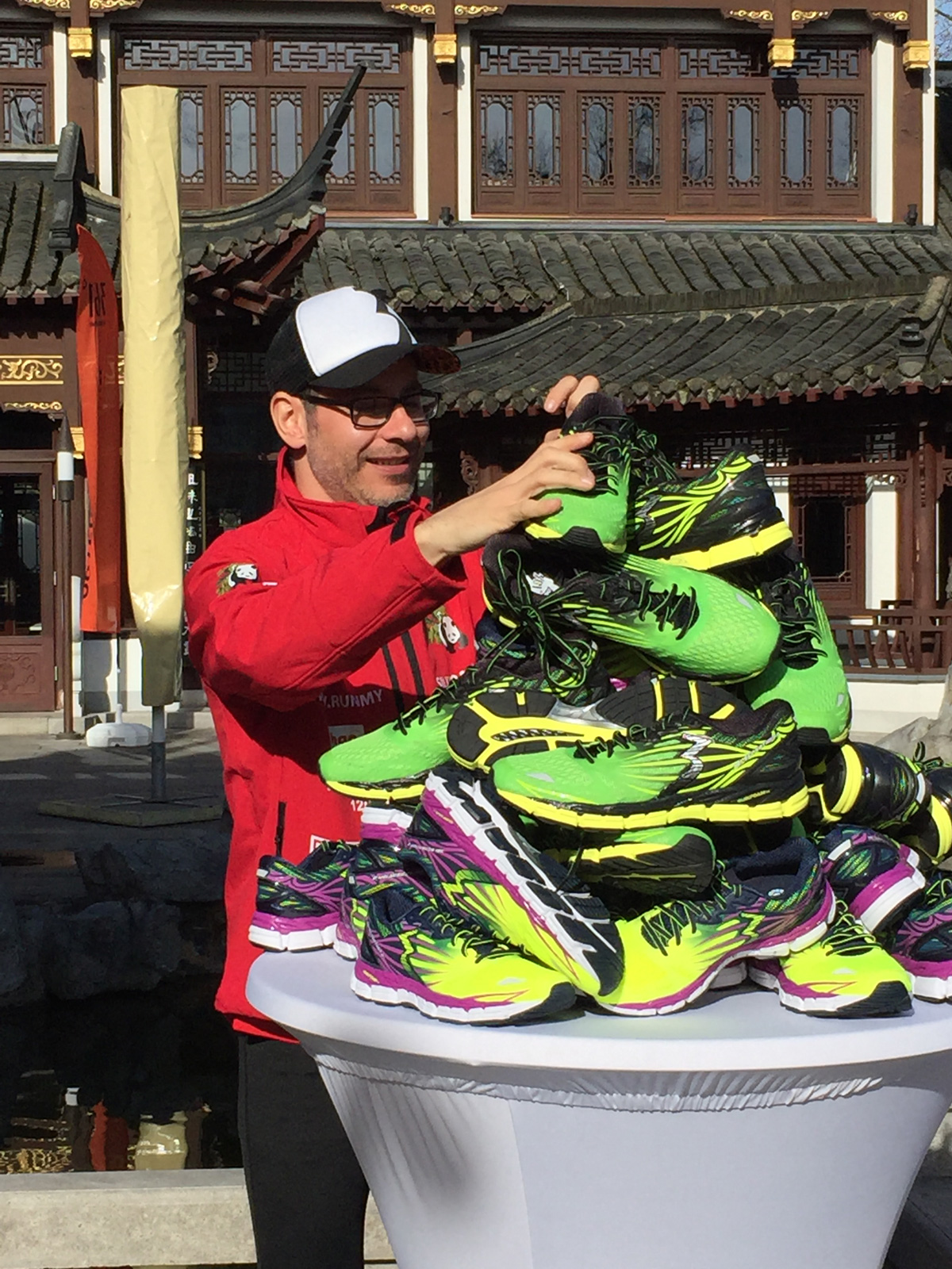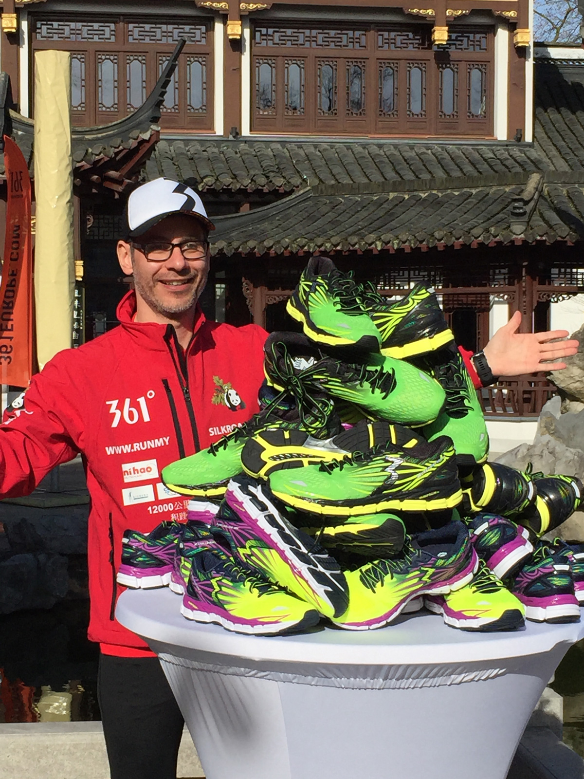 Der Route entsprechend heißt das Projekt runmysilkroad, entlang dem alten Händlerweg, der Seidenstraße, der das Mittelmeer auf dem Landweg über Zentralasien mit Ostasien verbindet. Kai läuft um Mauern einzureißen und für die Völkerverständigung. Sein Motto: Run to break down prejudice! Denn immer noch hegen wir gegenüber China Vorurteile geprägt von den schwarzen Schafen der Industrie, die die Medien uns immer wieder präsentieren. Nicht, dass ich die verbreiteten Mißstände gut heißen möchte, aber es gibt auch andere: Unternehmen und Organisation, die fair arbeiten und zuverlässige Geschäftspartner sind! Kai hat sich als Sponsoring Partner nur Unternehmen raus gesucht, die Deutschland-China übergreifend arbeiten. Absichtlich. Er hat jedes Produkt, das ihm auf seinem Weg begleitet selbst ausgesucht und getestet. Er ist sogar mit dem Auto drüber gefahren, hat seine Laufschuhe ins Tiefkühlfach gelegt und seine Uhr Backofen-Hitze abverlangt. Härtetests für besondere Umstände: 235 Tage auf der Straße, in der er sich auf seine treuen Wegbegleiter wie GPS-System, Stirnlampe, Klamotten und Schuhe verlassen können muss. Um sein Ziel in der geplanten Zeit zu erreichen, muss eben alles reibungslos funktionieren. Die Route hat es in sich: 3700 Höhenmeter, 500 km Wüste, Schneeregionen, durch Gebiete voller Wölfe und Bären.